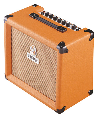 Orange Crush Pix CR20LDX 20w, 1x8 combo with gain and master levels, overdrive circuit, bass-mid-treble controls, headphone jack, footswitch jack, tuner, and digital effects. A very nice little, solid state practice amp. |